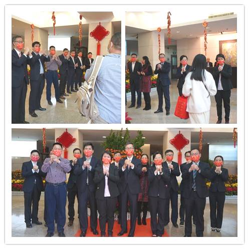 會議一結束,領導們馬不停蹄奔赴在廣德大廈辦公的總部各職能部門及國貿部,向員工拜年,為大家送上公司特制的新年福袋,祝大家新的一年福氣滿滿,順順利利。