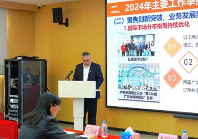 公司黨支部書記、董事長周遜姜以《務實謀新提質效,深化改革促發展》為題作工作報告。報告從聚焦主業、賦能蓄力、培根鑄魂三個方面總結了公司2024年的工作情況。2024年,廣紡聯公司統籌抓好地塊交儲、物業管理等多項工作,公司實現營業收入完成預算目標值103%;利潤總額完成預算目標值156%。報告指出,2025年廣紡聯公司將圍繞廣州輕工集團及紡織公司的總體部署,緊扣“數智領航鏈全球,提質增效建新功”的工作主題,從緊盯主責主業、提升改革深化、堅持黨建引領、加強風險防范、強化人才隊伍建設等五大方面推動經營工作實現質的有效提升。